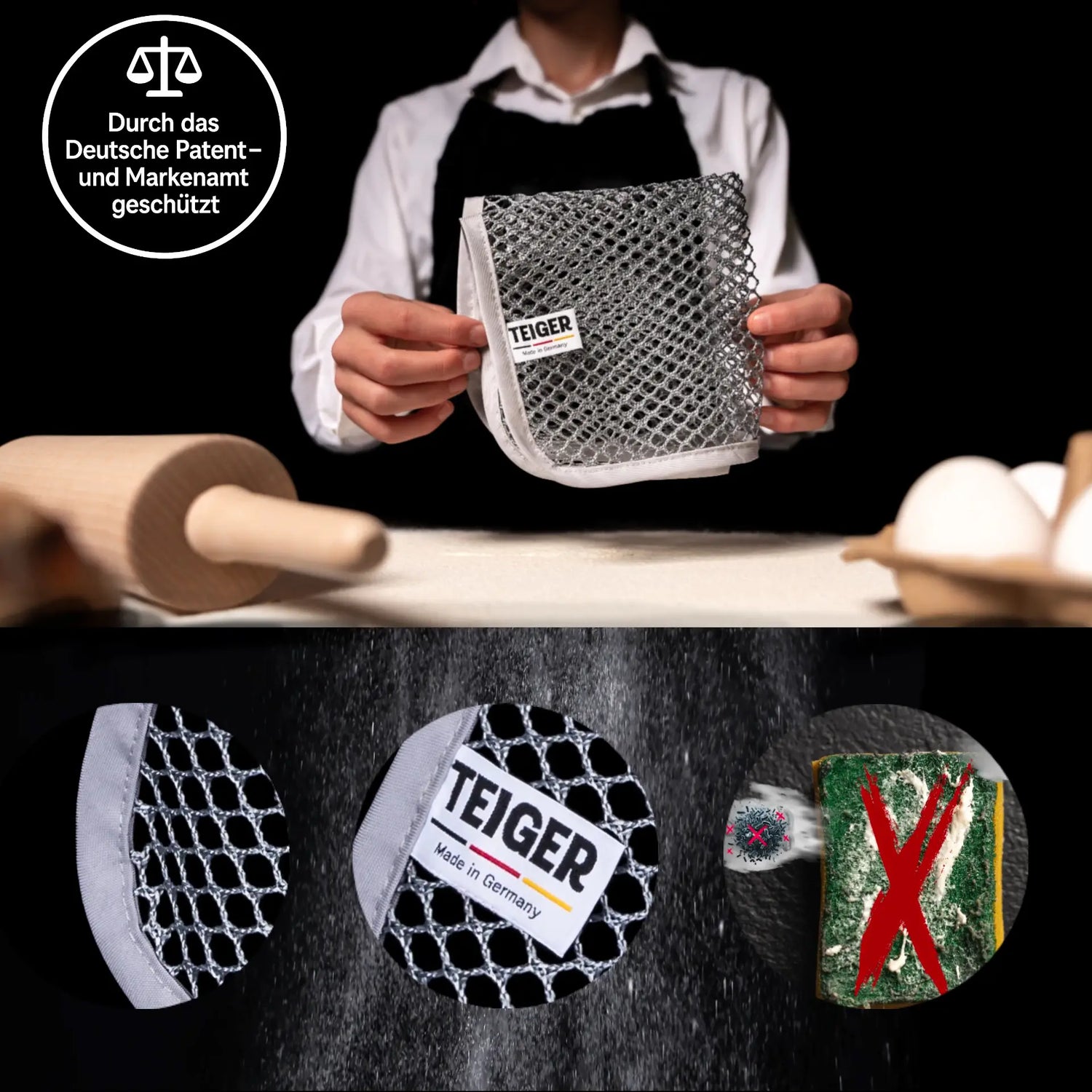 Mit dem Teigreinigungstuch Teiger® gelingt die Reinigung im Handumdrehen und dir bleibt mehr Zeit zum Backen, Kochen und vor allem zum Genießen!