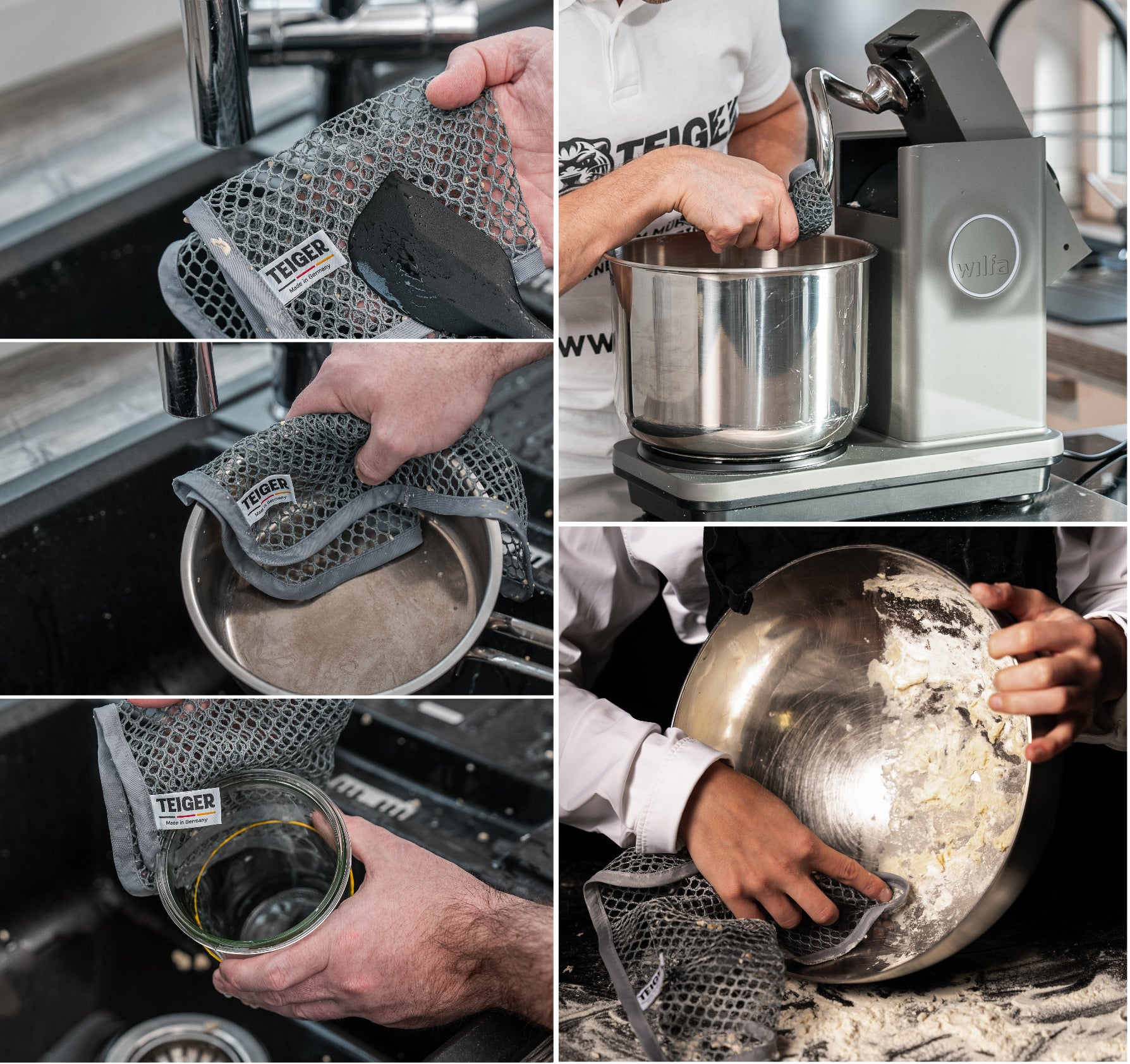 Der Teiger verbessert das Reinigungserlebnis und steigert die Freude am Kochen und Backen. Das spezielle Reinigungstuch entfernt Verschmutzungen schnell, gründlich und ohne Rückstände. Küchenutensilien, Geräte und sogar Hände lassen sich effizient reinigen und erstrahlen wieder in neuem Glanz.